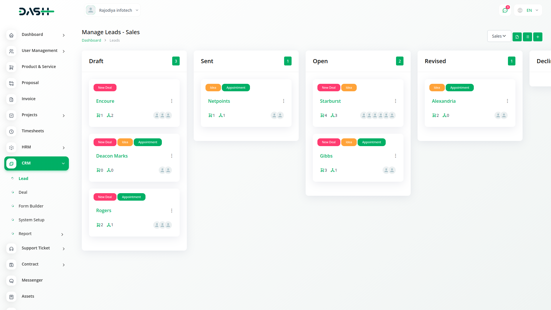 Uma ferramenta de gestão para manter a precisão na gestão de chumbo. Usando esta ferramenta proficiente você pode gerenciar a visibilidade de seus leads em diferentes estágios do pipeline.