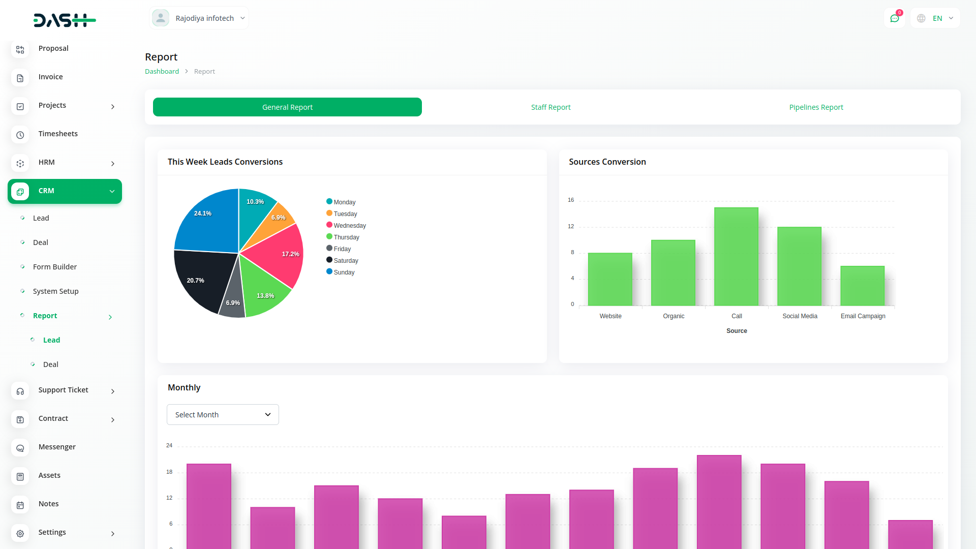 Obtem uma análise acionável de todos os seus leads, acordos, usuários, faturas e produtos-em um painel interativo. Criar e implementar planos de negócios efetivos, definir um número máximo de acordos, opções de pagamento e fazer muito mais.