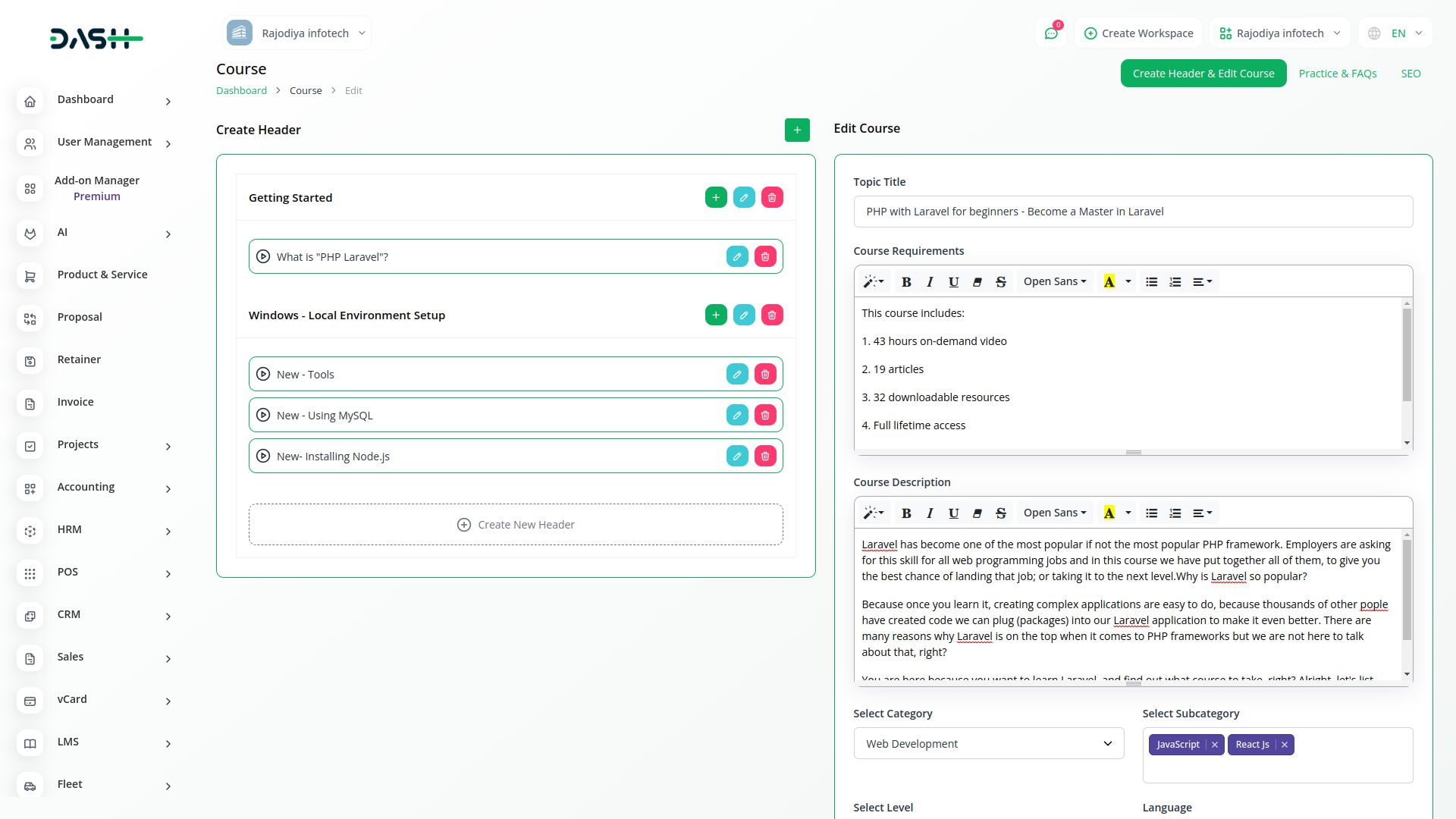 O LMS é o melhor construtor de cursos. Direito de gerenciar os cursos de várias categorias para cumprir capítulos, cada aspecto de seus cursos poderia ser quitado através de LMS sob uma aba. Aproveite o aprendizado gerenciável com uma interface fácil de usuário.