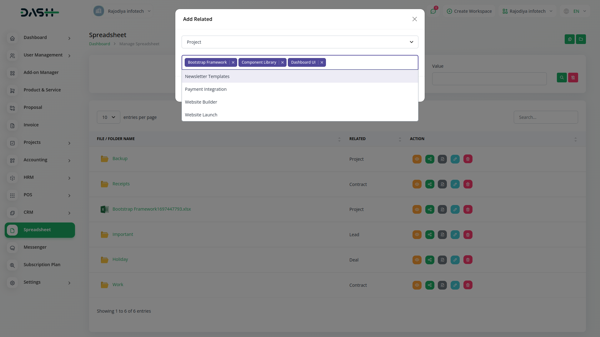 É possível criar subpastas dentro das pastas e compartilhá-las com os usuários. Associe também vários módulos como projetos, leads, acordos, contratos, etc., com essas pastas a organizar dados relacionados. Adicionalmente, é possível compartilhar a pasta diretamente dentro desses módulos para fácil acesso, agilizando a gestão de dados e a colaboração.