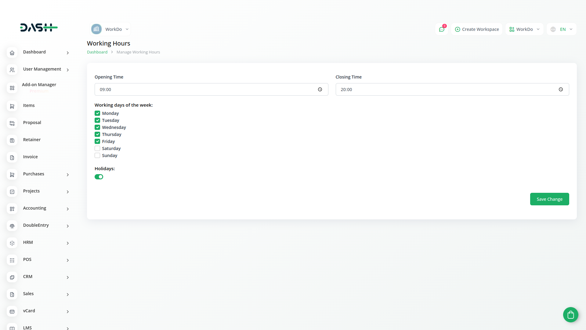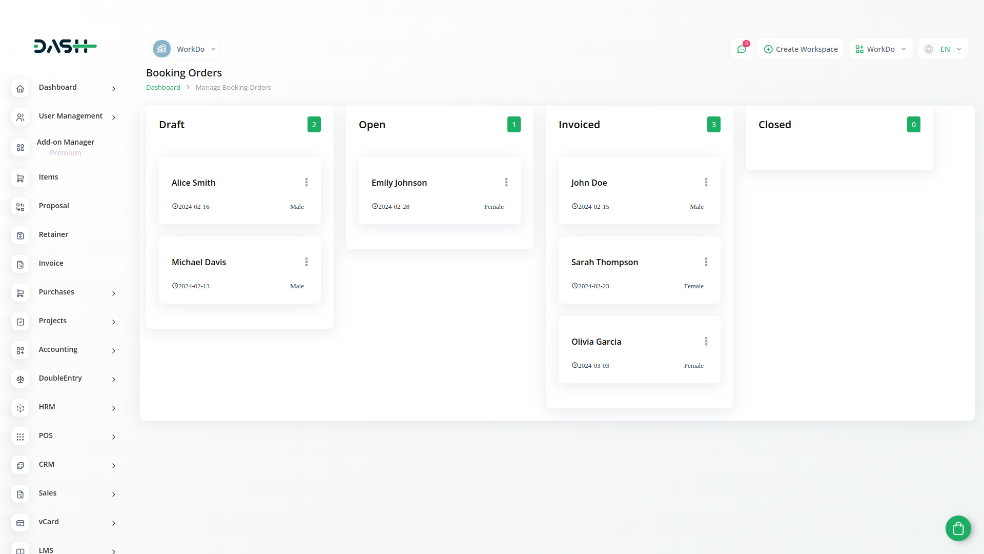 Com o Dash, você pode convenientemente gerenciar todas as suas funções de negócio a partir de um único local.