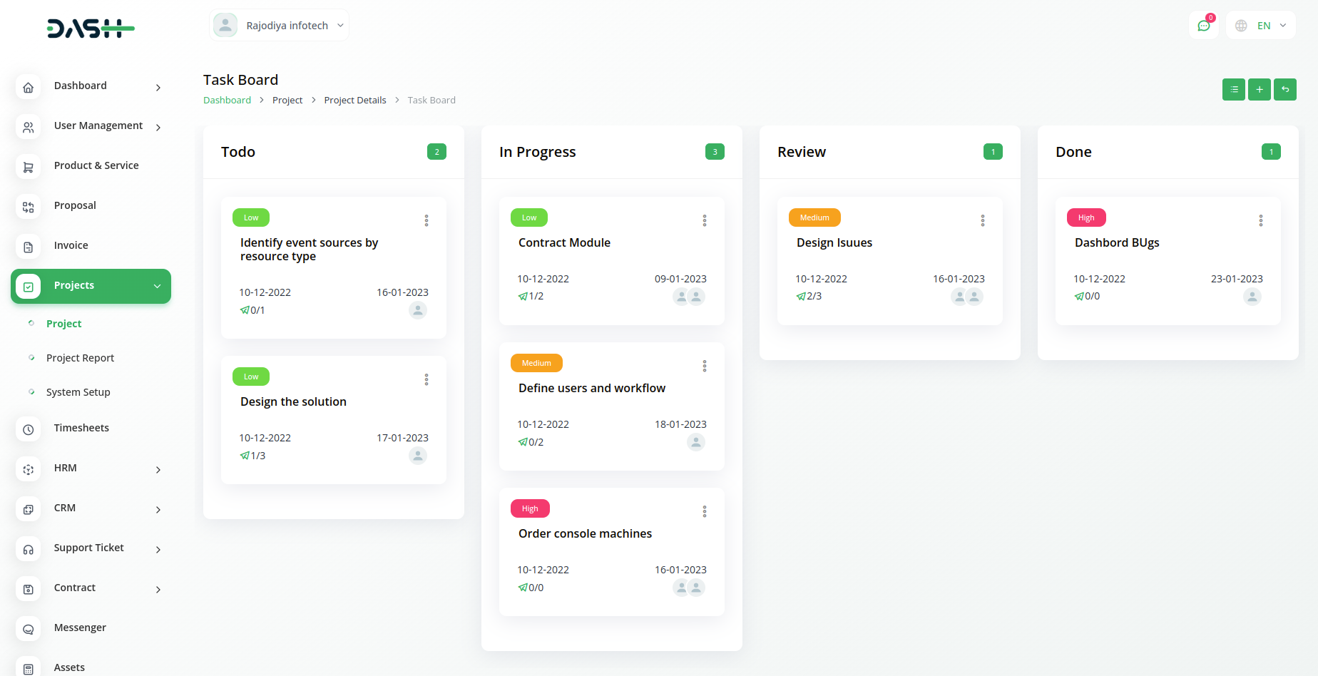 As tarefas do projeto podem ser substituídas pelo sistema de arrasto Kanban. Obtenha uma visão visual melhor de todos os seus projetos, tarefas e membros da equipe designada. Aumentar a produtividade da equipe.